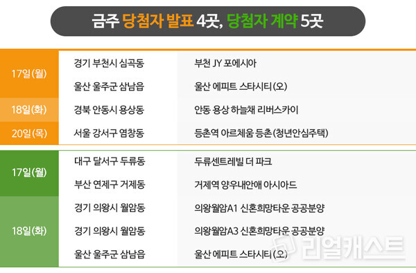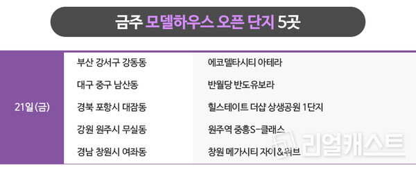 금주 모델하우스는 지방에서 5곳이 오픈합니다.