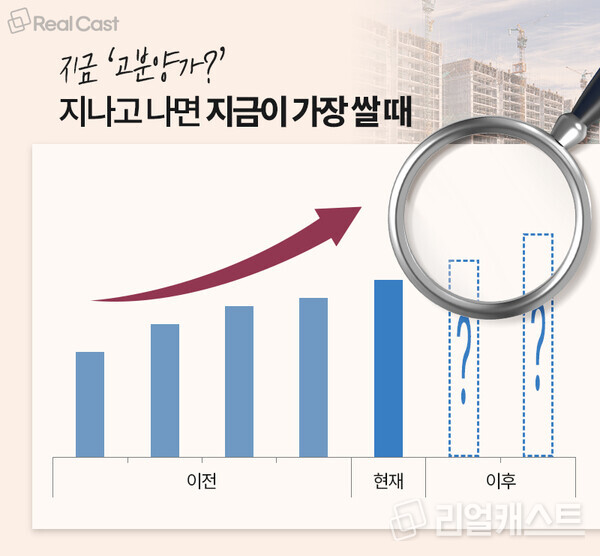 하지만 시간이 지나고 보면 오히려 그때가 분양가 저렴했다는 사실을 알게 됩니다. 지금 분양가가 가장 싸다는 것이 결코 틀린 말이 아닌 것인데요.
