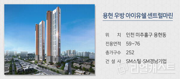인천 미추홀구 용현동에서는 대한토지신탁이 시행하고 SM스틸·SM경남기업이 짓는 '용현 우방 아이유쉘 센트럴마린'이 분양합니다. 용현5동 새한아파트 주택재건축정비사업조합이 시행하고, 대한토지신탁㈜이 사업대행을 맡아 진행하는 사업으로 아파트와 오피스텔이 함께 있는 복합 단지입니다.
