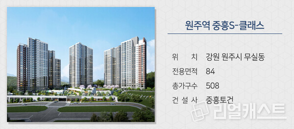 중흥토건은 강원 원주시 남원주역세권에 짓는 '원주역 중흥S-클래스'를 분양합니다. 단지가 들어설 남원주역세권은 KTX원주역 주변 약 47만㎡ 부지에 약 4000여 세대 규모의 주거단지와 기반시설이 조성돼 신흥 주거지로 꼽히는 곳입니다.