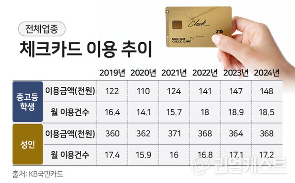 KB국민카드(사장 김재관)가 중·고등학생의 소비트렌드 변화를 살펴보기 위해 지난 2019년부터 2024년까지 5년간의 체크카드 결제 데이터를 살펴봤습니다.