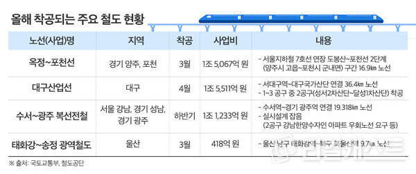 서울지하철 7호선 연장 ‘옥정 포천선’ 건설공사가 착공에 들어가며 올해 또 착공에 나설 철도사업들에 대한 관심이 높아지고 있다.