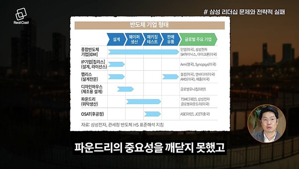 삼성전자가 파운드리 시장에서 실패한 주요 원인은 기술적 완성도의 부족과 고객 대응 방식의 차이에 있습니다. TSMC는 고객사와 긴밀한 협력을 통해 최적의 반도체 생산을 지원하는 방식으로 사업을 운영하고 있습니다.