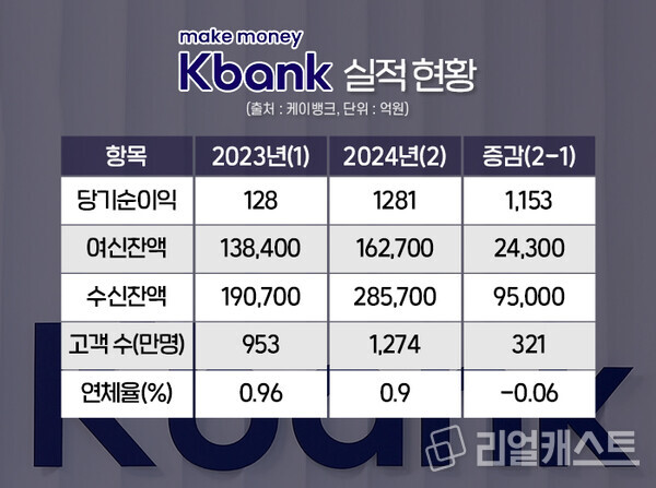 인뱅 2위인 케이뱅크(은행장 최우형)의 경우에는 23년 대비 당기순이익이 크게 늘어난 것으로 확인됐습니다.