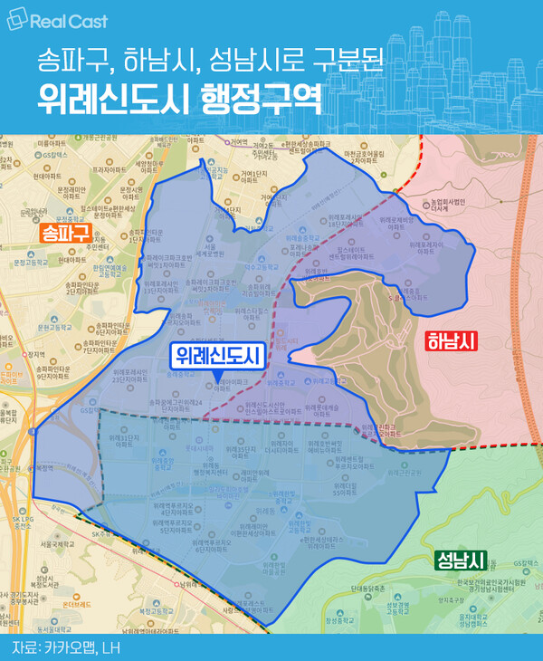 위례신도시는 서울 송파구 장지동, 거여동 일부와 성남시 창곡동, 복정동 일부, 하남시 학암동 일대에 조성된 2기 신도시입니다. 3개 행정구역이 모여있음에도 토지거래허가 규제는 송파구에 해당되는 단지에만 적용되고 있어 혼선을 빚고 있습니다.