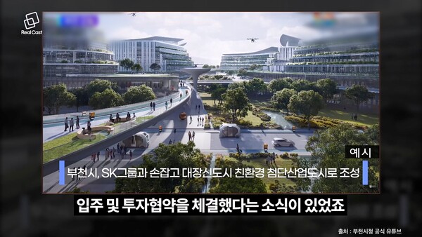 부천시와 SK그룹이 입주 및 투자협약을 체결했다는 소식이 있었죠. 기사에 따르면 SK그룹은 1조 원을 들여서 친환경 에너지 R&D연구시설 ‘SK그린테크노캠퍼스’를 짓습니다. 그룹 계열사 7곳이 입주해서 연구인력 등 3천여 명이 근무하게 됩니다.