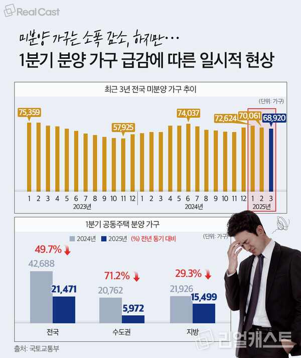 하지만 미분양 가구 감소에는 다른 사연이 있습니다. 바로 올 1분기 분양 가구가 평년보다 크게 줄어들면서 적체돼 있던 미분양 일부가 팔렸기 때문입니다.
