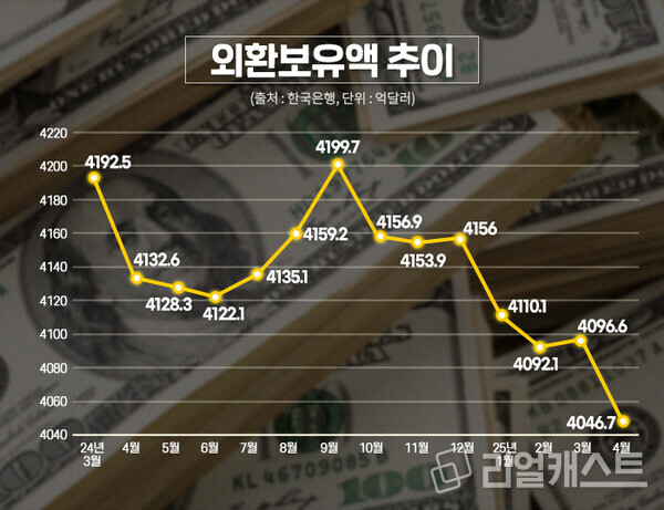 외환보유액은 트럼프 정부의 상호관세 부과 여파로 변동성이 커지고 있는 현 상황에서 환율 방어를 위해 활용해야 하는 만큼 중요한 지표로 여겨집니다.