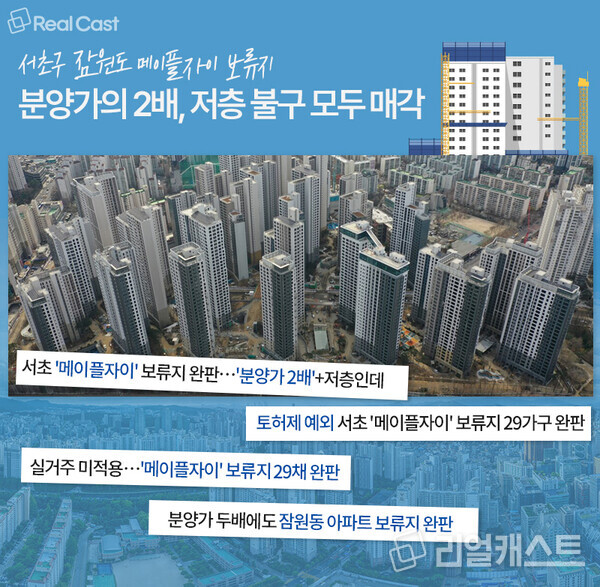 서울 서초구 잠원동의 신반포4지구를 재건축해 짓는 ‘메이플자이’ 보류지 29가구가 지난 4월부터 실시한 경쟁입찰 및 선착순 중개거래를 통해 모두 마각 됐습니다.