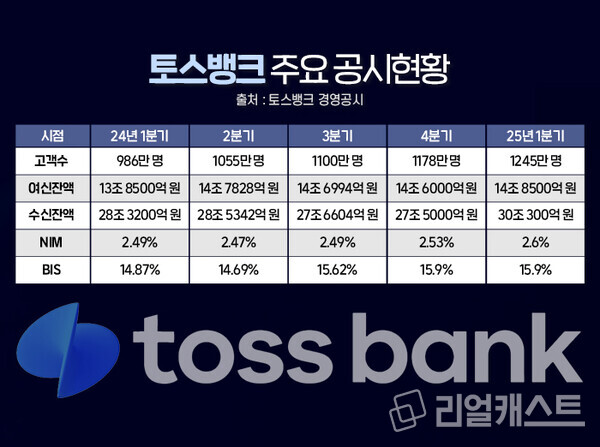 토스뱅크는 지난달 30일 2025년 1분기 경영공시를 공개했습니다. 1분기 당기순이익은 187억 원 기록하며 전년 동기(148억 원) 대비 40억 원 이상 순이익이 증가한 것으로 확인됐으며 출범 이래 분기 최대 실적을 기록했습니다.