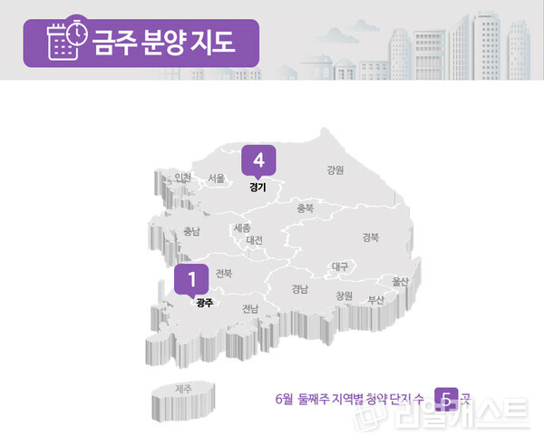 부동산인포에 따르면 6월 2주 전국에서 신규 청약 및 입주자를 모집하는 곳은 5곳, 총 1899가구로 집계됐습니다(총 가구 수 기준).