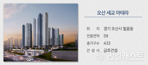 금호건설이 경기 오산시 벌음동 오산세교2지구에 짓는 '오산 세교 아테라'를 분양합니다. 민간참여 공공분양 단지로 분양가 상한제가 적용됩니다. 거주의무기간이 없어 소유권 이전등기 후 매매가 가능합니다. 수도권전철 1호선 오산역을 이용할 수 있고, 초교·고교(예정) 부지가 도보권입니다.