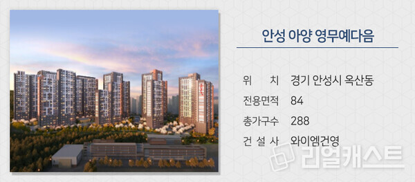와이엠건영이 경기 안성시 아양지구에 짓는 '안성 아양 영무예다음'을 분양합니다. 공공택지로 분양가상한제가 적용됩니다. 백성초·중·고(예정)와 학원가 등이 가깝습니다. 안성제1일반산단, 안성동신일반산단(예정) 등의 직주근접 환경을 갖췄습니다.