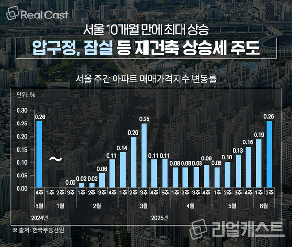 6월 2주 서울 0.26% 상승…2024년 8월 이후 10개월 만