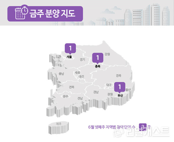 부동산인포에 따르면 6월 4주 전국에서 신규 청약 및 입주자를 모집하는 곳은 3곳, 총 930가구로 집계됐습니다(총 가구 수 기준).