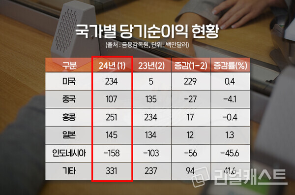 국가별로는 미국, 싱가포르, 홍콩에서는 당기순이익이 전년과 비교해 각각 2억 2900만 달러, 4900만 달러, 1700만 달러가 늘었습니다. 반면 중국과 동남아는 각각 2700만 달러가 줄었습니다.
