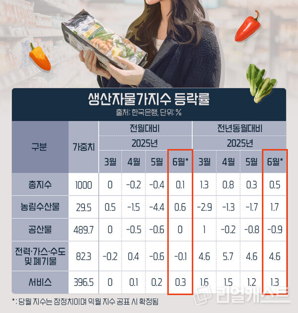 지난 21일 한국은행이 발표한 6월 생산자물가지수는 5월 대비 0.1% 오른 것으로 나타났습니다.