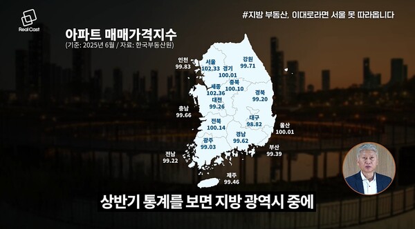 지방 광역시 중 상반기 기준으로 상승 전환에 성공한 곳은 울산과 세종 정도이며, 여전히 대부분 지역은 회복세가 미미합니다. 다만 대구 수성구, 부산 해운대구 등 일부 주거 선호 지역에서는 전세 물량 부족과 실수요 유입으로 매수세가 일부 형성되고 있습니다.