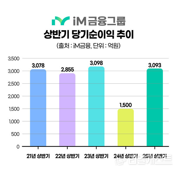 iM금융의 2025년도 상반기(누적) 지배주주지분 당기순이익은 3093억 원을 기록했습니다. 이는 전년 동기(1500억 원) 대비 106.2% 증가한 수준으로 이는 상반기 최대실적을 기록했던 지난 2023년(3098억 원)과 유사한 수치입니다. iM뱅크(구 DGB대구은행)가 지난해 7월 시중은행으로 전환하고 전국구로 영업망을 넓힌 iM금융이 실적 반등에 성공하며 더 큰 성장을 이룰지 귀추가 주목됩니다.