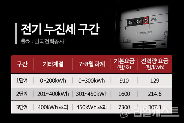 정부와 한전은 지난 2019년부터 여름철(7~8월) 전기 누진세 구간을 완화해 폭염에 대한 전기요금 부담을 낮추고 있는 상황입니다.