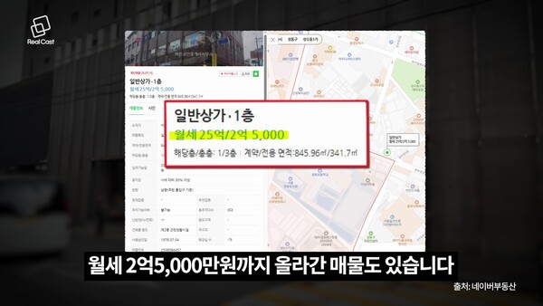 가장 인기 있는 연무장길의 경우, 전용면적 28㎡(약 10평도 안 되는) 건물 1층의 임대료가 월세 2,400만원에 달하며, 이는 평당 약 280만원 수준입니다. 이는 서울 평균 임대료인 평당 약 17만원의 16배가 넘는 금액입니다. 건물 전체를 통임대하는 경우, 월세가 보통 1~2억원대까지 올라가며, 가장 비싼 곳은 보증금 25억원에 월세 2억5,000만원까지 치솟은 매물도 존재합니다.