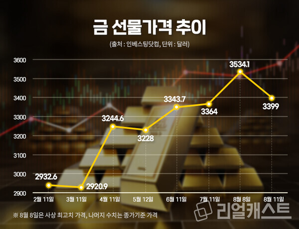 뉴욕상업거래소에서 금 선물은 지난 8일 온스당 3534.1달러에 거래되며 한때 사상 최고치를 경신하기도 했습니다.