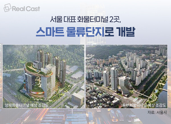 마지막으로 1979년 개장한 동대문구 장안동 동부화물터미널 부지에도 지하엔 물류시설이, 상부엔 주거시설과 상업시설이 들어설 예정입니다. 5만㎡ 규모에 지하 5층부터 지상 최고 39층까지, 공동주택 204가구와 오피스텔 324실, 업무시설 및 물류창고, 근린생활시설, 공공기여시설이 들어서는데요. 중랑천이 가까운 만큼, 동측 건물은 특화된 건축 디자인을 적용, 중랑천변의 랜드마크 타워로 조성할 계획입니다.