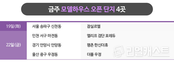 8월 3주 모델하우스 오픈 예정인 곳은 4곳이며 수도권 3곳, 지방 1곳 등입니다.