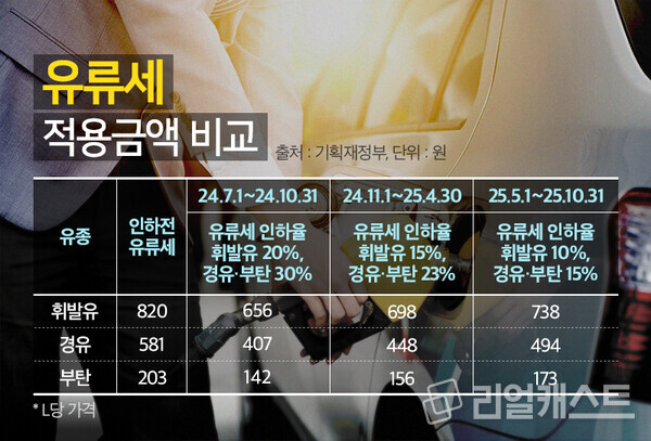 이번 유류세 인하가 물가 안정을 위해 5년째 이어온 조치이지만, 향후 재정정책의 기반이 될 세수를 생각하면 정부의 부담으로 작용할 수 있기 때문입니다.