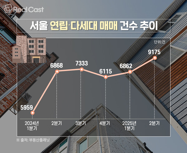 9월, 상업용 부동산 전문 업체인 부동산플래닛에 따르면, 올해 2분기 연립·다세대주택 매매 건수는 9,175건으로 1분기와 비교해 33.7%나 증가했습니다. 거래 금액은 1분기 대비 42% 늘어난 3조7,010억원에 달한 것으로 집계됐습니다.