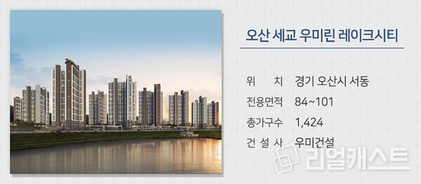 우미건설은 경기 오산시 서동에 짓는 '오산 세교 우미린 레이크시티'를 분양합니다. 단지는 세교2지구와 3지구(계획)의 중심부에 위치하며 세교3지구는 반도체클러스터 등의 업무 기능을 강화한 ‘자족형 커넥트 시티’로 개발돼 관련 수요가 유입될 것으로 기대됩니다. 수도권전철 1호선 오산역으로 동탄도시철도, GTX-C노선 등이 연결될 계획이다. 실내수영장과 최상층 스카이라운지 등 차별화된 커뮤니티 시설도 들어설 예정입니다.