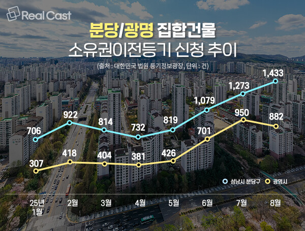 대한민국 법원 등기정보광장 통계에 따르면, 8월 집합건물 소유권이전등기 신청 현황은 경기도 성남시 분당구의 경우, 1,433건으로 3개월 전인 5월 819건과 비교해 614건(75%) 증가했습니다. 올해 1월 706건과 비교해 보면 2배 이상 늘었습니다.
