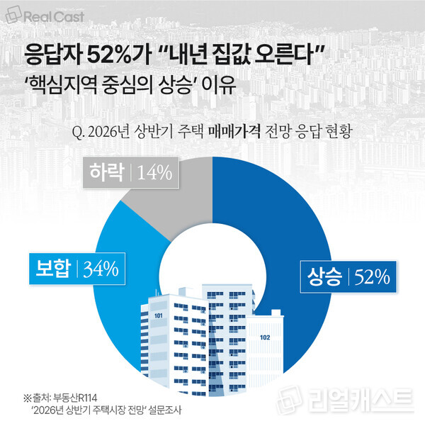 한국건설산업연구원과 부동산R114 등이 내놓은 전망에 따르면, 내년(2026년) 주택시장은 ▲전셋값 폭등 ▲수도권 상승, 지방 하락의 양극화 ▲공급 불안에 따른 심리 불안이 나타날 것으로 보입니다.