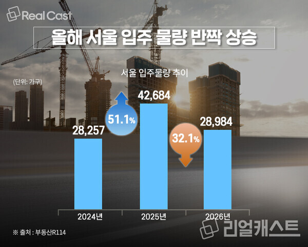 부동산R114에 따르면 올해 서울에서는 총 4만 2,684가구가 입주합니다. 이는 지난 해 입주물량(2만 8,257가구) 대비 51.1% 증가한 수준입니다.