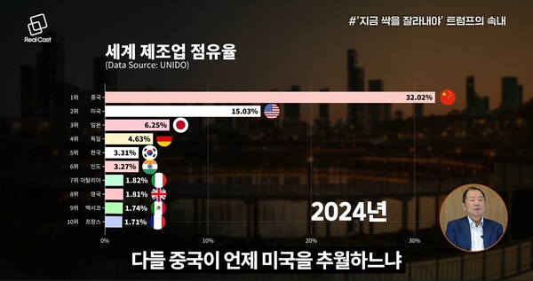 중국의 경제력, 특히 제조업 분야는 현재 미국 제조업 규모의 약 두 배에 이른다고 평가됩니다. 무역 규모 역시 이미 월등하다는 인식이 확산되어, 국제사회에서는 중국이 언제 미국을 추월하느냐가 주요 화제가 되고 있습니다. 이러한 상황에서 미국은 당연히 견제에 나설 수밖에 없으며, 제조 산업 자체에 대한 직접 견제는 이미 효과가 제한적이라고 판단합니다.