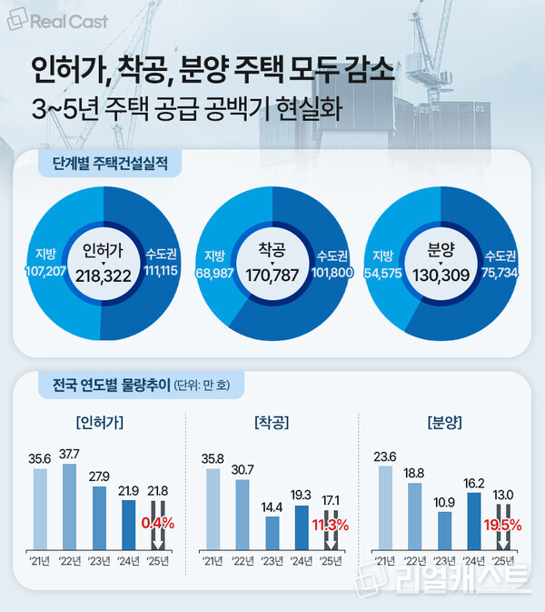 인허가, 착공, 분양의 동시 감소는 향후 5년 이내에 주택 공급 공백이 본격적으로 나타날 선행 지수로 볼 수 있습니다. 또한 수도권과 지방의 공급 불균형은 부동산 시장의 불균형으로 이어질 수 있습니다.